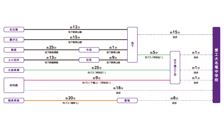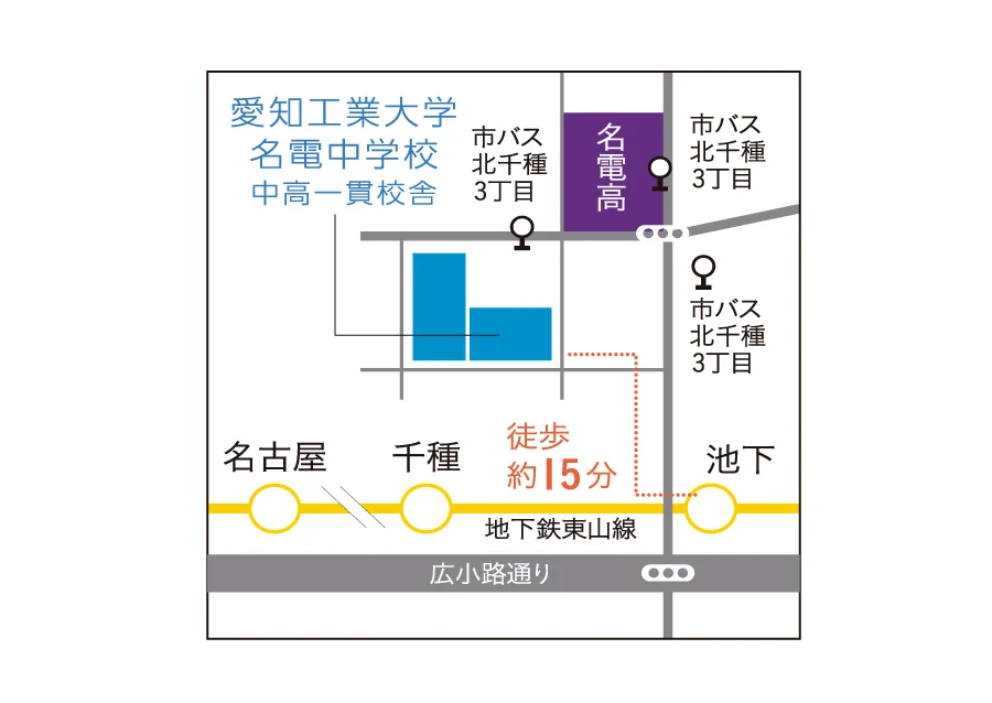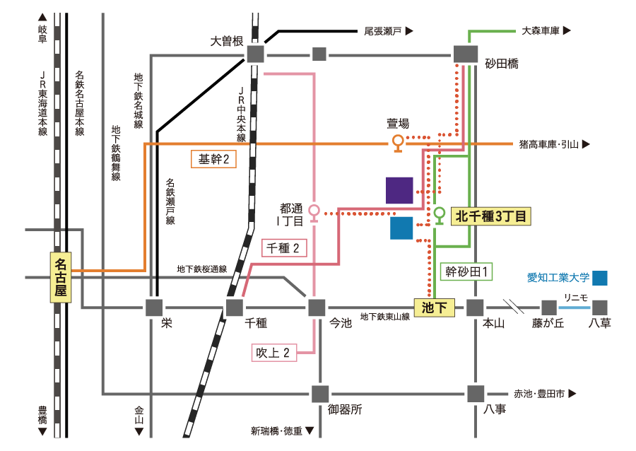地下鉄東山線 池下駅 1番出口から北へ直進、徒歩15分