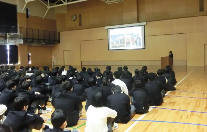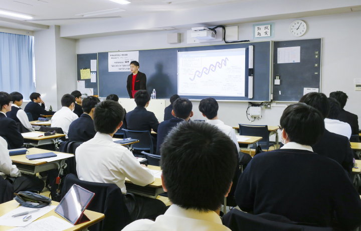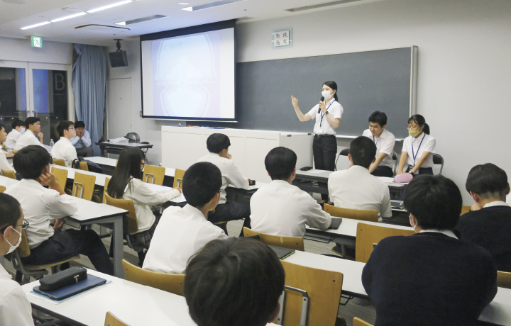 本校を卒業した現役大学生による講演会。高校生活の過ごし方や受験に向けたアドバイスなど、先輩の立場から在校生に語ってもらいます。また、大学での学びのことなどもリアルな経験談として話してもらい、将来の進路選択について考えるきっかけをつくります。