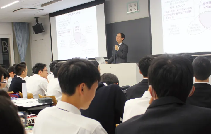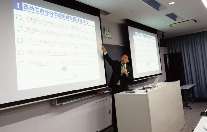 高校1年生には文理選択に関する説明会、高校2・3年生には進路選択に関する説明会を実施します。受験の心構えや進路・志望校選択に大切な知識や情報を伝えていきます。保護者の方々にも参加していただいて、将来を見据えた選択ができるようアドバイスをします。