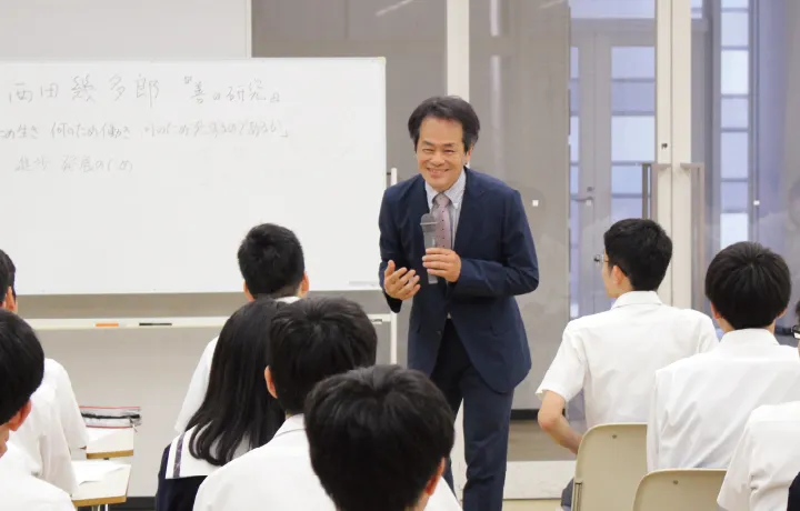 経済界で活躍されている方々を招き、社会で必要とされる人材像や若者に期待していることなどを語っていただきます。経済界のトップの方からお話を伺うことで、職業に対する関心を高めるとともに、将来進むべき方向やそれを実現させるための心構えなどを考えます。