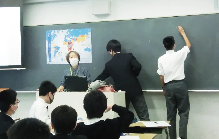 国連UNHCR協会によるワークショップです。難民を取り巻く問題や、UNHCRの活動、国際協力などをテーマに講演を聞きます。生徒たちは学んだ内容をもとに、グループごとに話し合いを行い、問題点やその解決方法などについて考えながら理解を深めていきます。日本にいるだけではなかなか気に掛けることのないような世界のさまざまな問題に目を向けることで広い視野を養います。