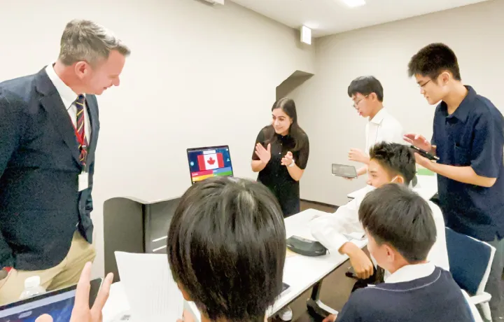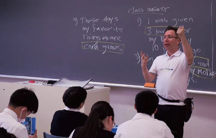 英語の授業は、4技能についてバランスよく学習するため、英語Aと英語Bの2科目制を採用。英語Aでは検定教科書を用い、主に読解力やリスニング力を養います。英語Bではネイティヴ教師によるスピーキングと日本人教師による文法指導に特化した授業を少人数制で行っています。