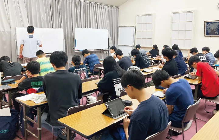 8月下旬に2泊3日で実施します。高校1・2年の特進クラスの生徒全員と、進学クラスの希望者が対象です。朝8時から夜10時までの時間を活用し、90分授業を数回実施するとともに、集中して取り組める自習時間も設けています。規則正しい生活と学習環境の中で、学力向上を目指します。
